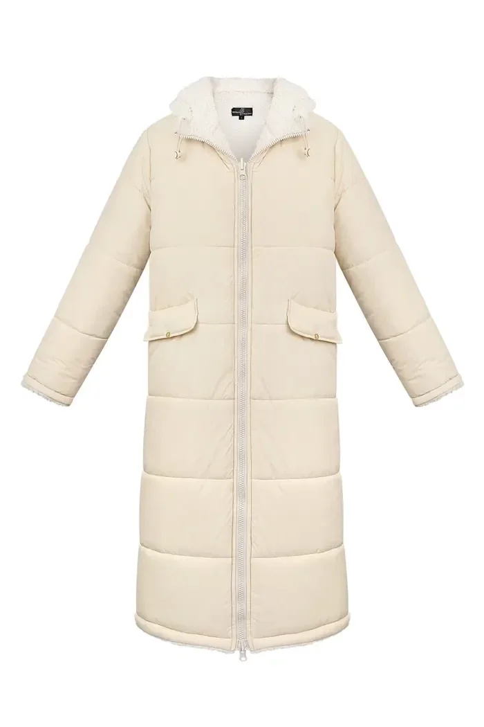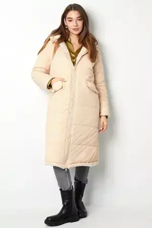 Winterjas lang teddy beige Large