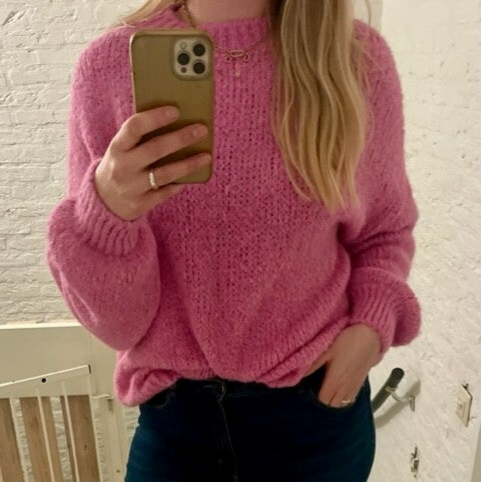 ○De trui valt mooi lang, je kunt hem ook over je broek heen dragen.